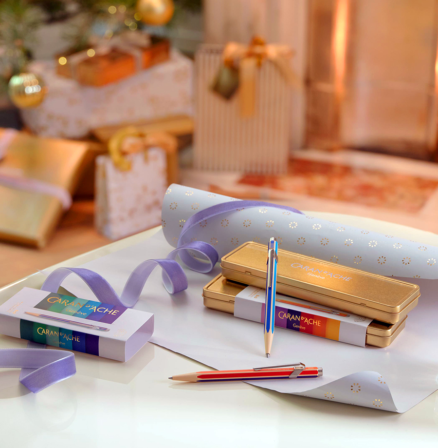 Caran d’Ache makes the festive period truly magical with a sparkling and original “Colour Treasure” collection. At the end of a rainbow of vibrant colours, unexpected treasures can be found nestling in sparkling gold cases which bring the magic of a timeless legend back to life.The essential 849 ballpoint pen boasts two shades in warm or cool colours, alternating yellow and pink, or blue and green. These two limited editions play on their appearance, paying tribute to the colour pencils so dear to the company in a resolutely nostalgic spirit.